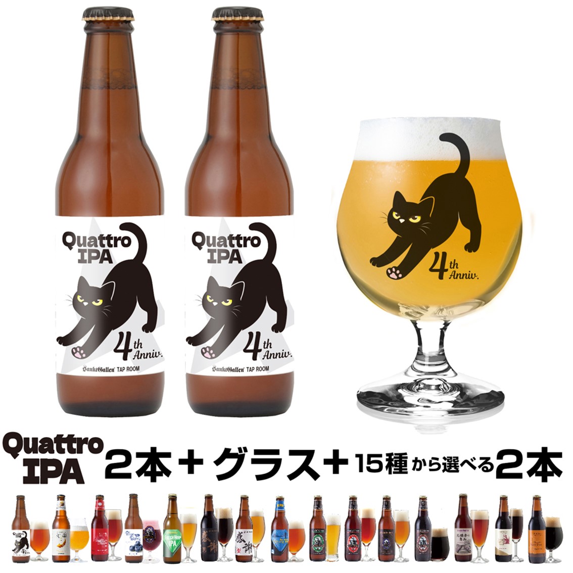 ■【4周年記念】クワトロIPA 2本+グラス+お好きなビール2本