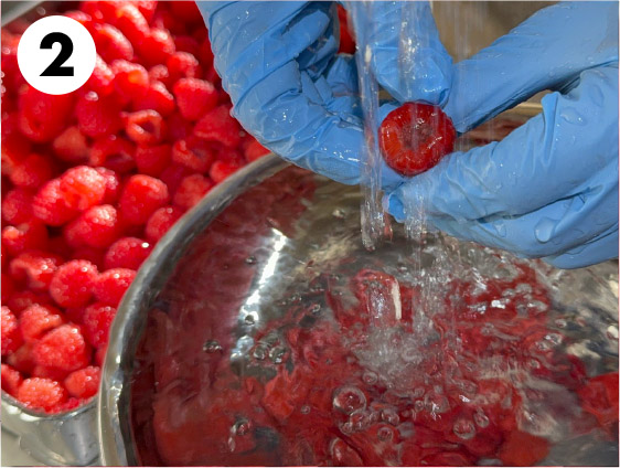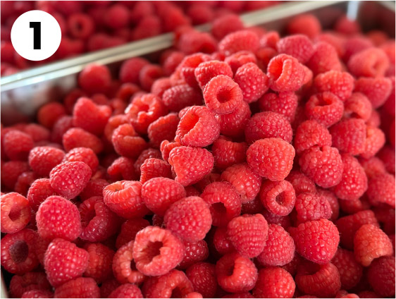 ラズベリーはとてもデリケートで、洗うときから慎重に扱わないとすぐに実が崩れてしまいます。